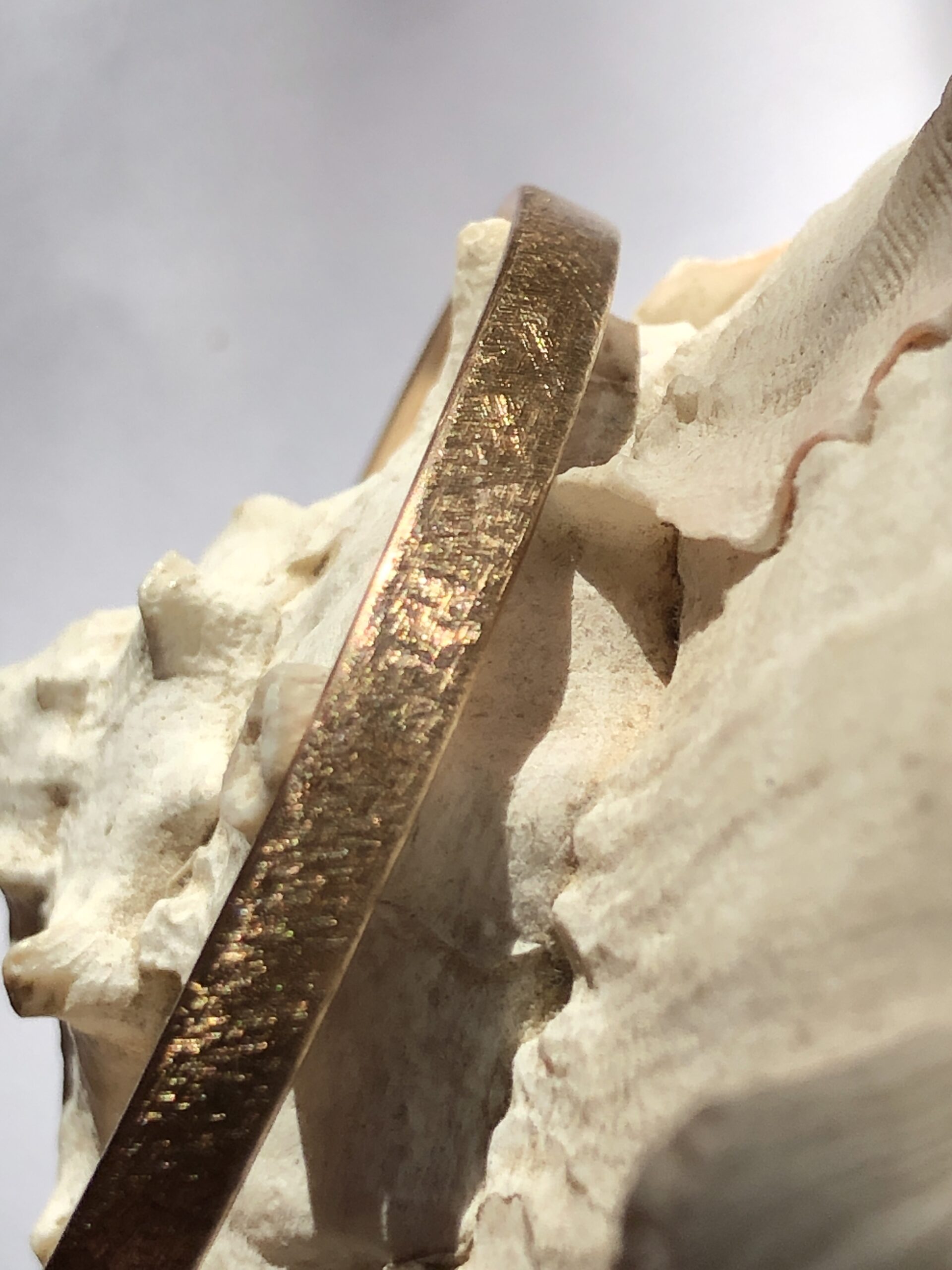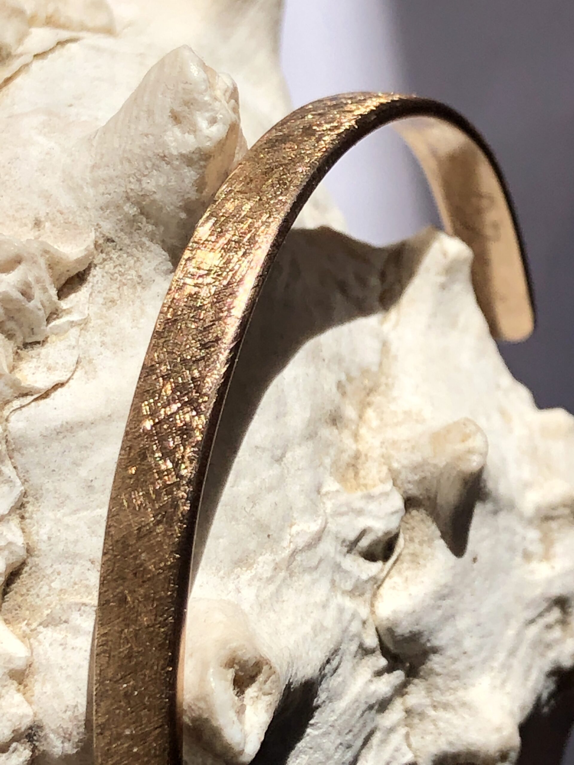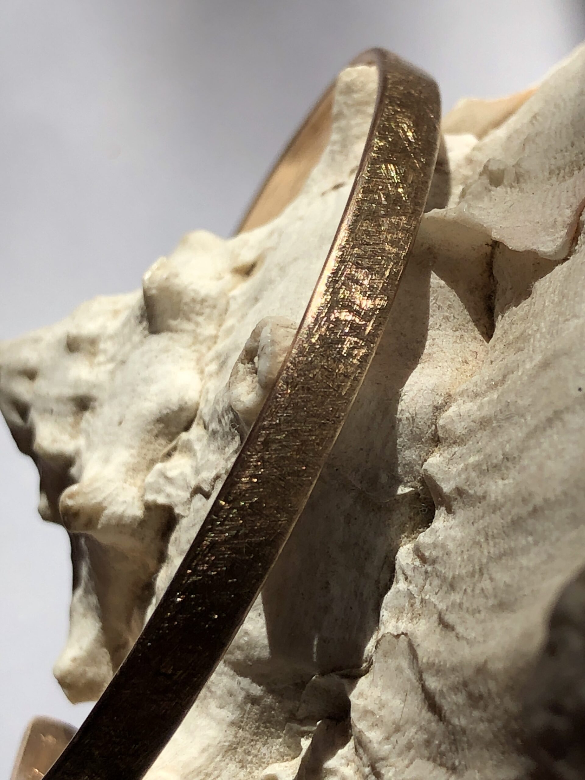 Bei Mainsilberwerk verwende ich Bronze mit 6 % oder 8 % Zinn, um die ideale Balance aus Härte, Farbton und Bearbeitbarkeit zu erreichen. Sie verbindet goldbraune Wärme. Bronze-Schmuckstücke wirken stabil und zugleich edel. Mit geeigneter Pflege bleibt der sanfte, warme Schimmer erhalten. Lässt man es zu, bildet sich mit der Zeit die typische Bronze-Patine, die auch einen besonderen Reiz und einzigartigen Charakter hat.