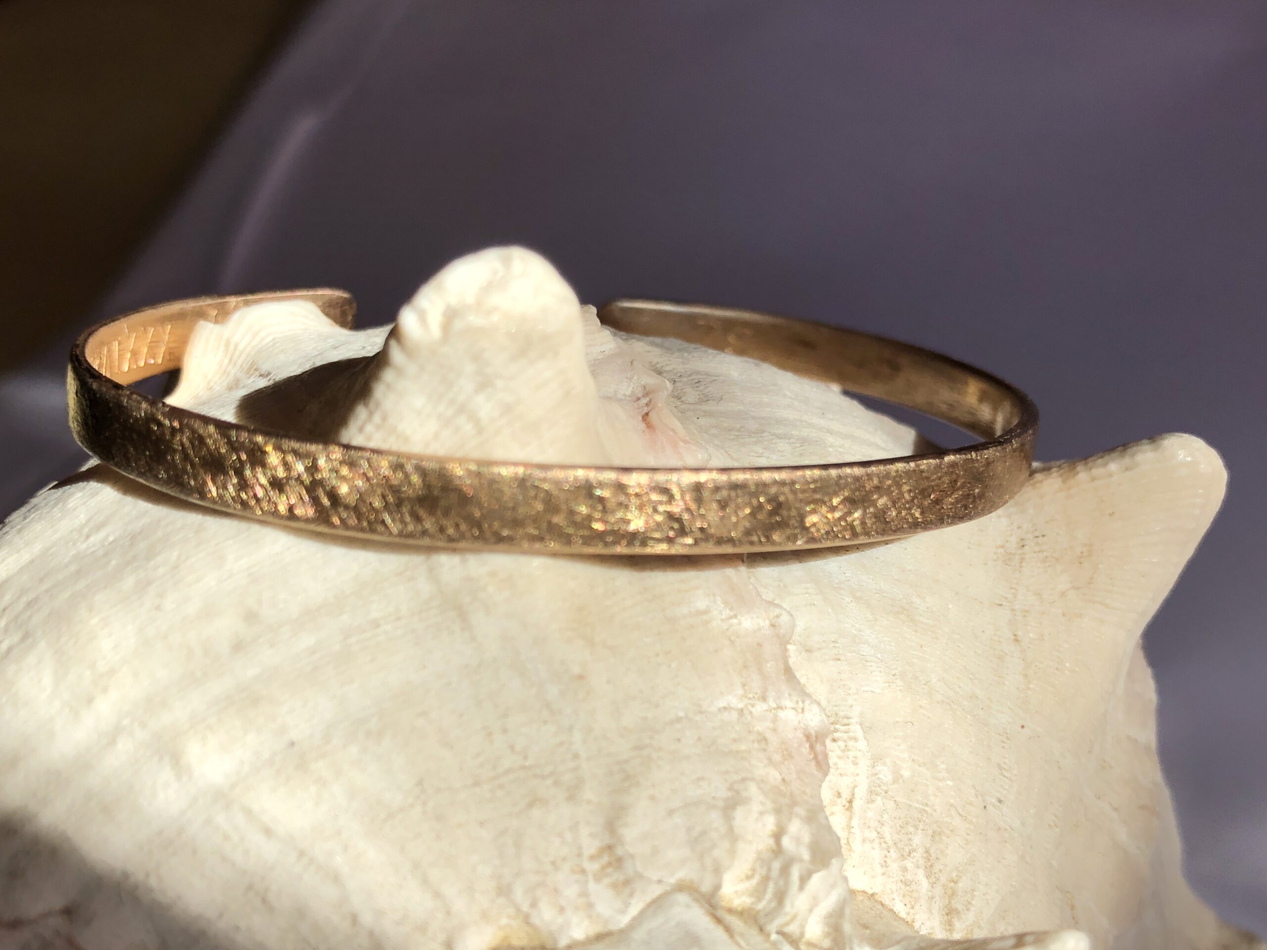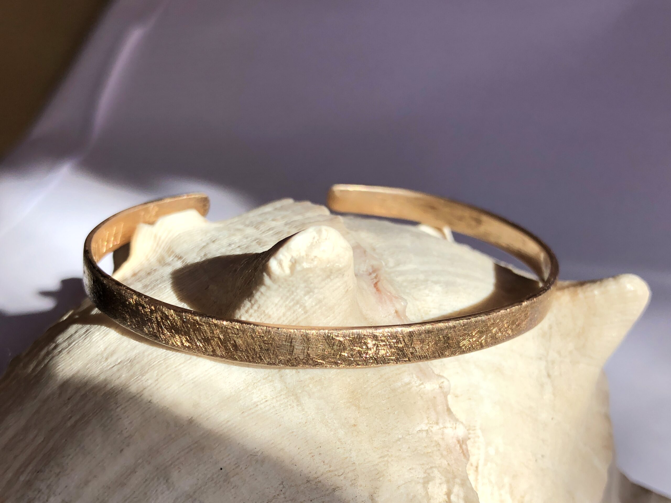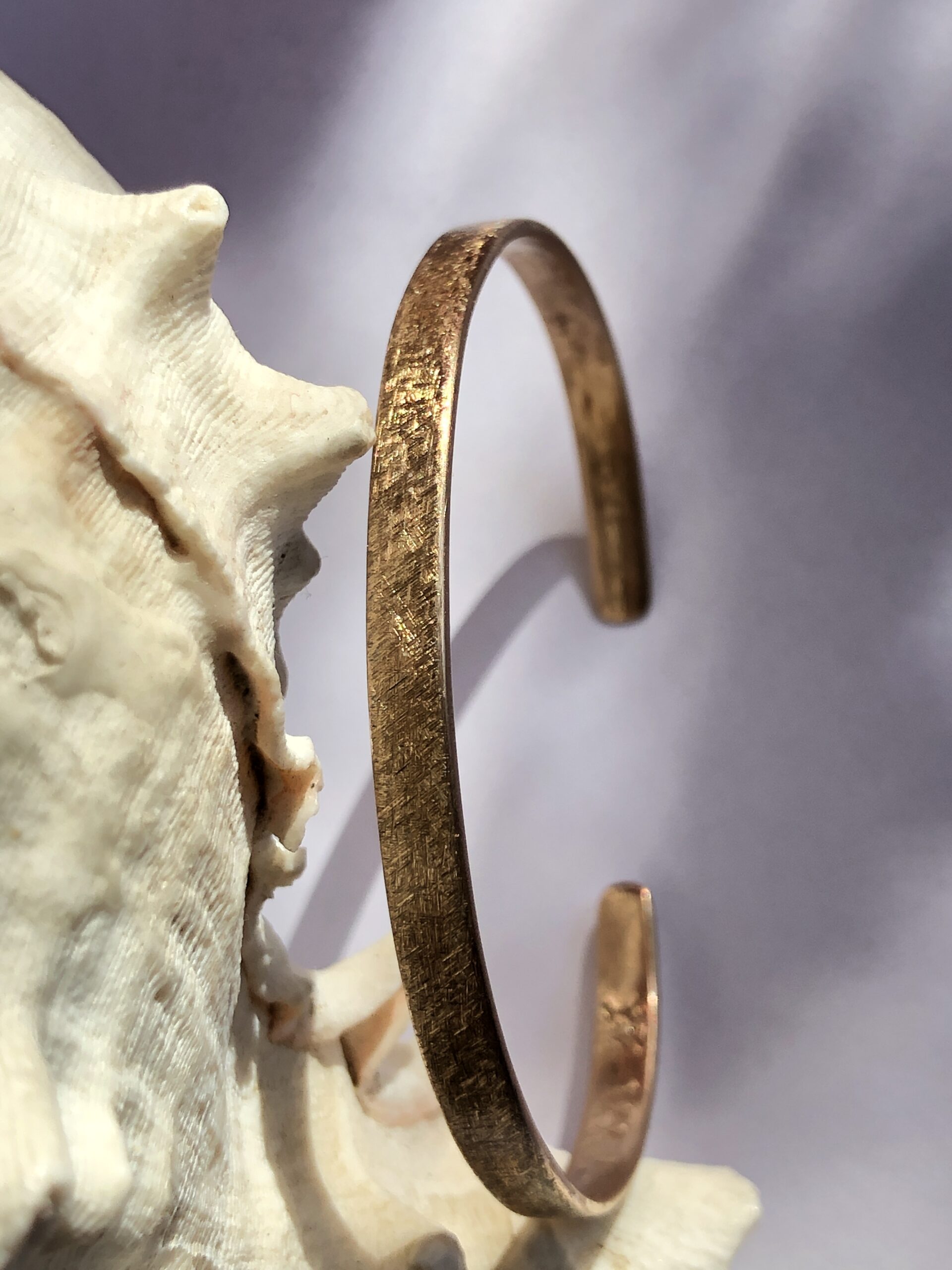 Bei Mainsilberwerk verwende ich Bronze mit 6 % oder 8 % Zinn, um die ideale Balance aus Härte, Farbton und Bearbeitbarkeit zu erreichen. Sie verbindet goldbraune Wärme. Bronze-Schmuckstücke wirken stabil und zugleich edel. Mit geeigneter Pflege bleibt der sanfte, warme Schimmer erhalten. Lässt man es zu, bildet sich mit der Zeit die typische Bronze-Patine, die auch einen besonderen Reiz und einzigartigen Charakter hat.