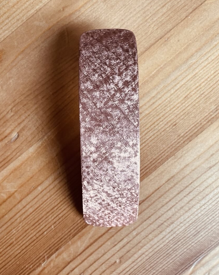 Kupfer (Cu) fasziniert mit seinem warmen, ins Rötliche gehenden Farbton, der mit der Zeit eine natürliche Patina entwickeln kann. Das Metall ist robust und zugleich gut formbar, sodass sowohl feine Details als auch markante Strukturen umgesetzt werden können. Kupfer gilt als Halbedelmetall und ist als Schmuckmetall stark unterbewertet.