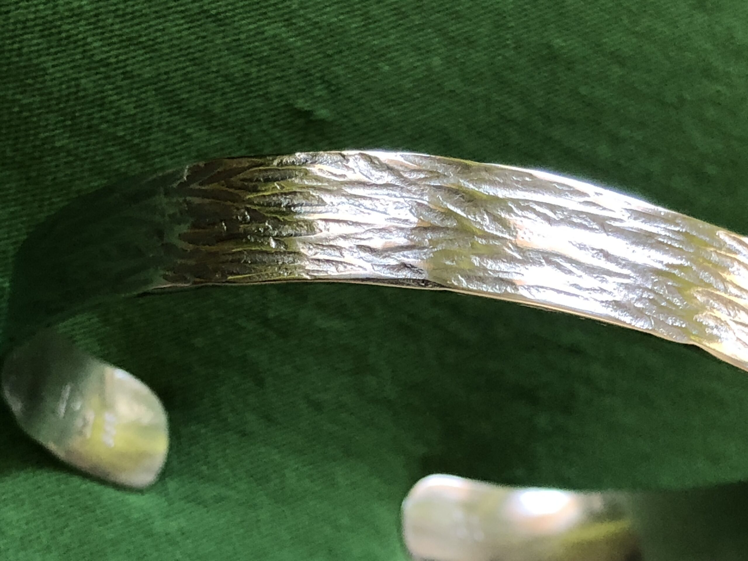 Dieser Armreif wird in der Werkstatt von Mainsilberwerk in Handarbeit gefertigt. Die Herstellung erfolgt nach Auftrag und orientiert sich an euren gewählten Vorgaben. Im Gegensatz zu einem beliebigen Serienprodukt entsteht so ein individuell für euch gefertigtes Schmuckstück, das seinen eigenen Charakter trägt.