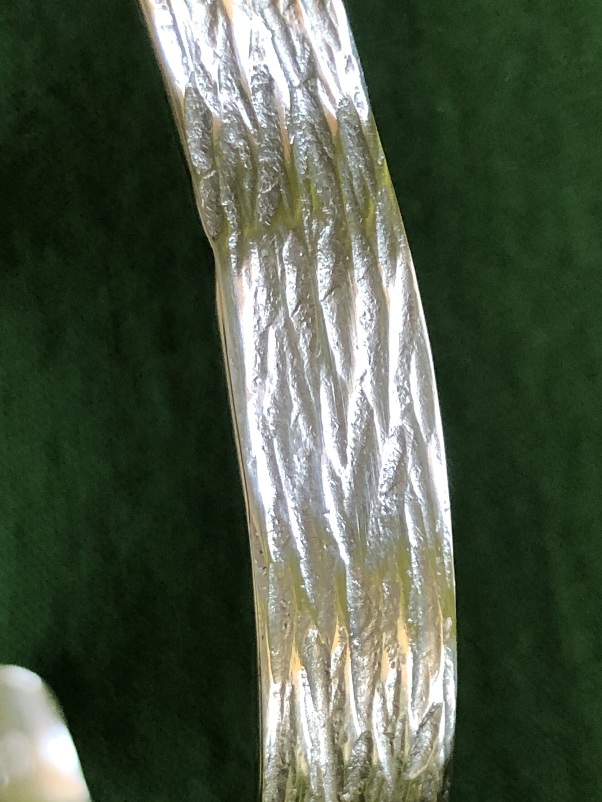 Dieses Muster ahmt die natürliche Textur von Baumrinde nach. Das organische Zusammenspiel von feinen Vertiefungen und polierten Oberflächenpartien erzeugt einen lebendigen Kontrast. Es erinnert an ruhige Wälder und das Rauschen des Laubes im Wind. Die Maserung sieht nicht nur schön aus, sondern fühlt sich auch haptisch interessant an und verleiht dem Schmuck eine naturverbundene Ausstrahlung. Jedes Stück ist ein eigenes Unikat, das die Schönheit und Harmonie der Natur widerspiegelt. Ideal für Liebhaber natürlicher, unaufdringlicher Eleganz.