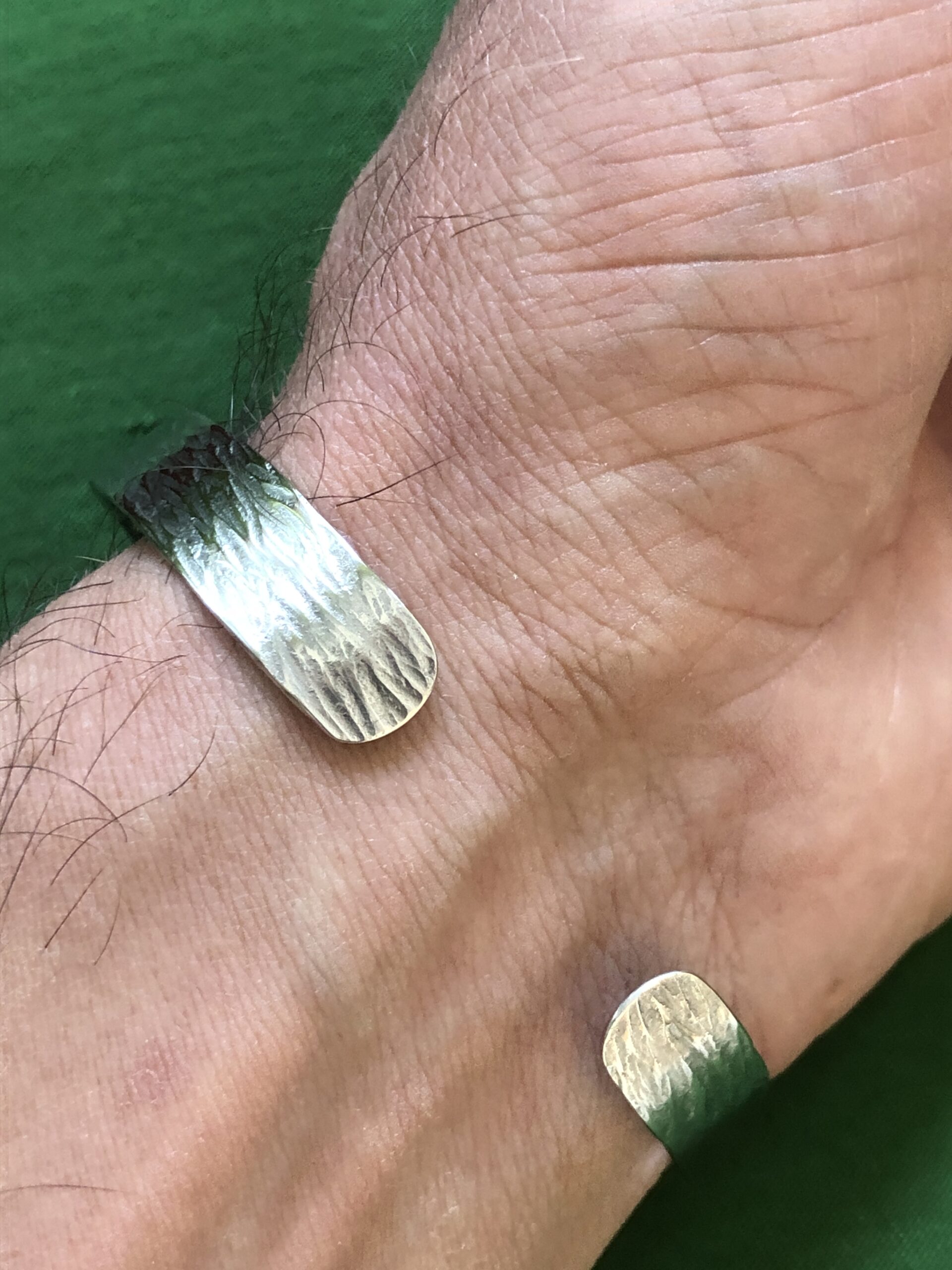 Für die Schmuckstücke verwende ich Edelmetalle und Halbedelmetalle, aus denen du dein Lieblingsmetall auswählen kannst. Neben dem Metall ist auch das gewünschte Muster aus meiner Kollektion frei wählbar, welches dir am besten gefällt – ob glänzend, matt oder mit einer der unterschiedlichen Oberflächenstrukturen von Mainsilberwerk.